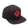 Das alltagstaugliche Bang Juice Logo Snap Back Base Cap mit dem Marken-Emblem vorn und dem Bang Juice Schriftzug als weiße Stickerei auf der Rückseite. Passend zum Logo sind die Nähte und die Luftlöcher ebenfalls rot, ein nettes Detail.
