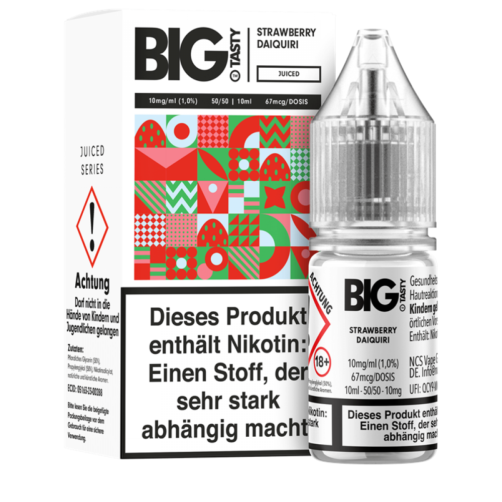 Als renommierter Hersteller im Bereich der E-Liquids und Aromen zeichnet sich Big Tasty durch die Hingabe zur Perfektion in Geschmack und Qualität aus. Mit einer beeindruckenden Palette von Aromen bietet Big Tasty unvergleichliche Produkte, die durch sorgfältig abgestimmte Mischungen von hochwertigen Inhaltsstoffen gekennzeichnet sind. Die Marke steht für Innovation, Präzision und maximalen Genuss, weswegen ihre Produkte von Dampfern weltweit geschätzt werden.